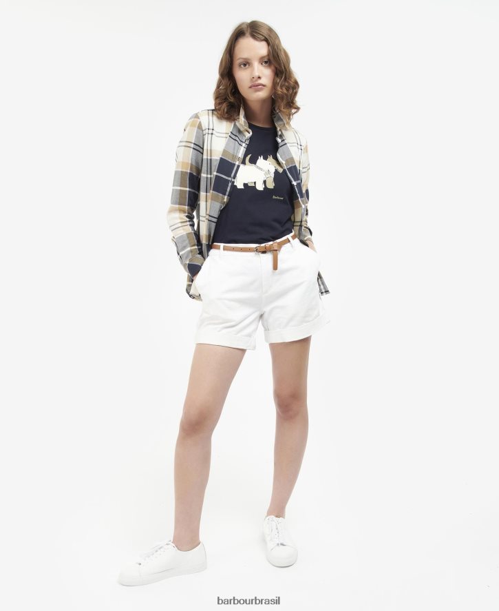 decorado com nosso xadrez exclusivo, este básico é a escolha perfeita para qualquer roupa casual elegante. com um design arremessado para uma silhueta feminina sutil, a camisa é finalizada com uma discreta barra do logotipo da Barbour na parte de trás do pescoço.