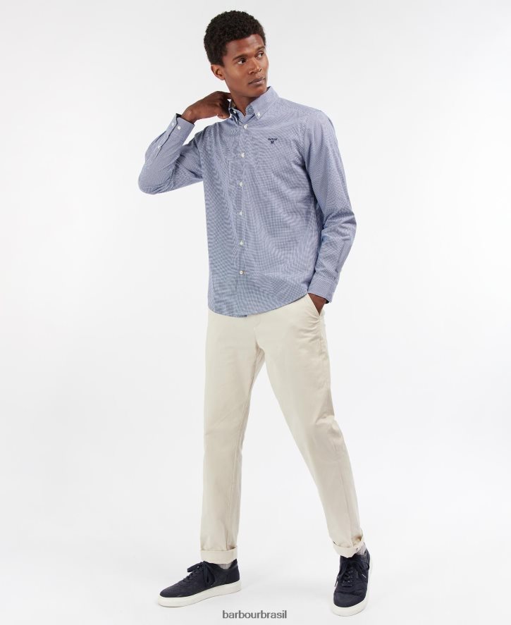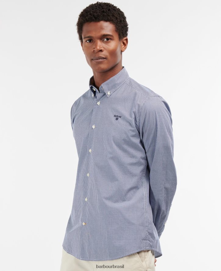 a camisa barbour britland ostenta uma camisa casual inteligente em um guingão de pequena escala com uma gola de botão para um estilo versátil básico. Com gola abotoada e acabamento xadrez na gola interna e nos punhos, esta camisa exala estilo atemporal.