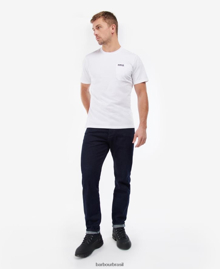 a camiseta barbour international radok é um clássico estilo masculino básico. é confeccionada em 100% algodão, com corte sob medida e possui gola redonda, mangas curtas e bolso no peito com bordado da marca.