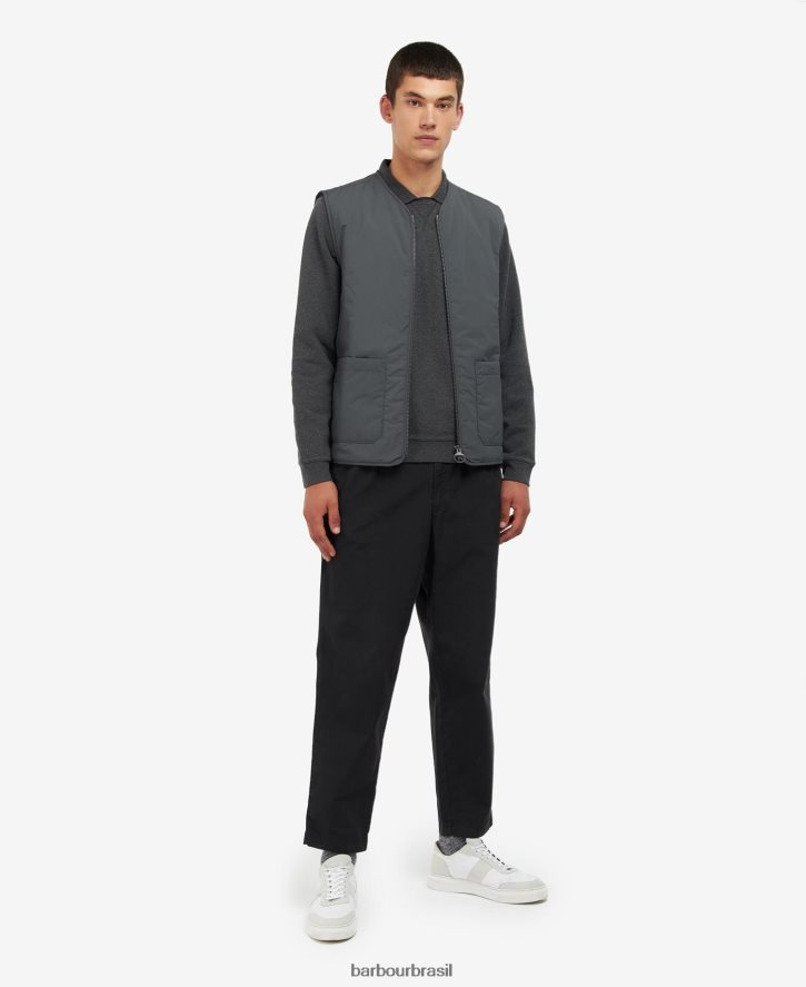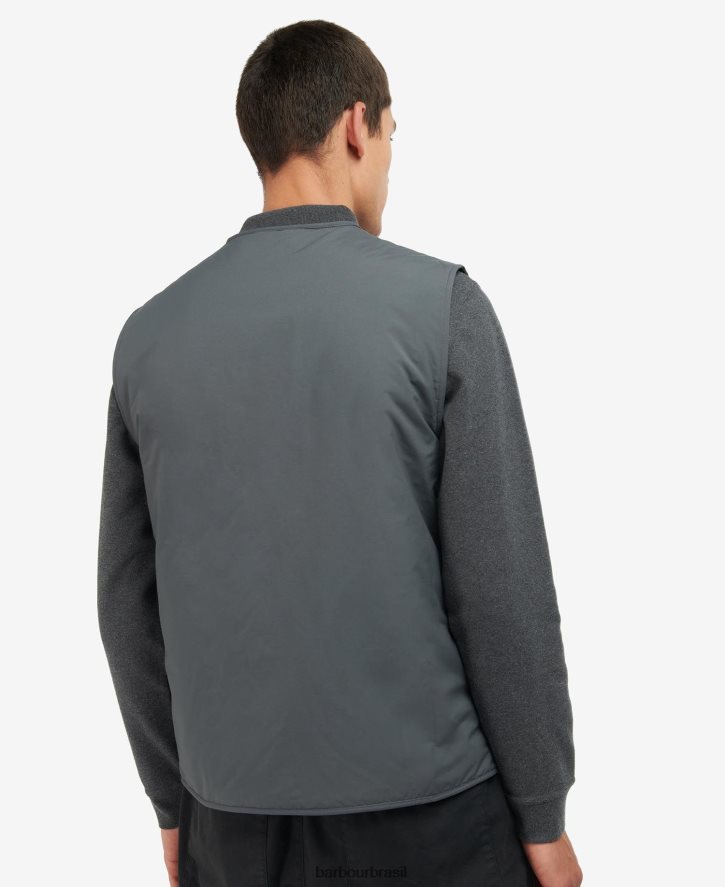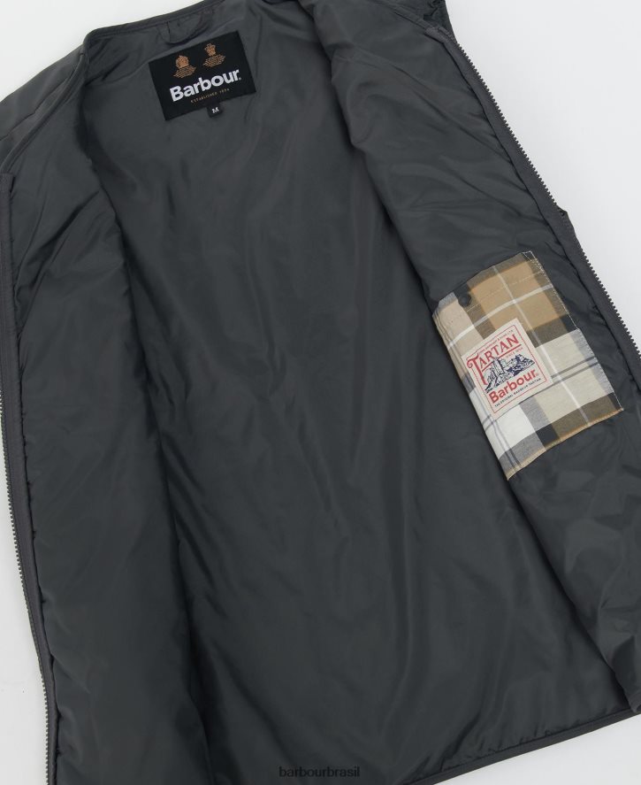 uma peça de roupa simples com muito apelo de estilo, o colete barbour harpen pode ser usado durante todo o ano. o colete acolchoado leve apresenta um fecho frontal com zíper, bolsos de patch e bordado barbour no bolso para uma borda de assinatura.