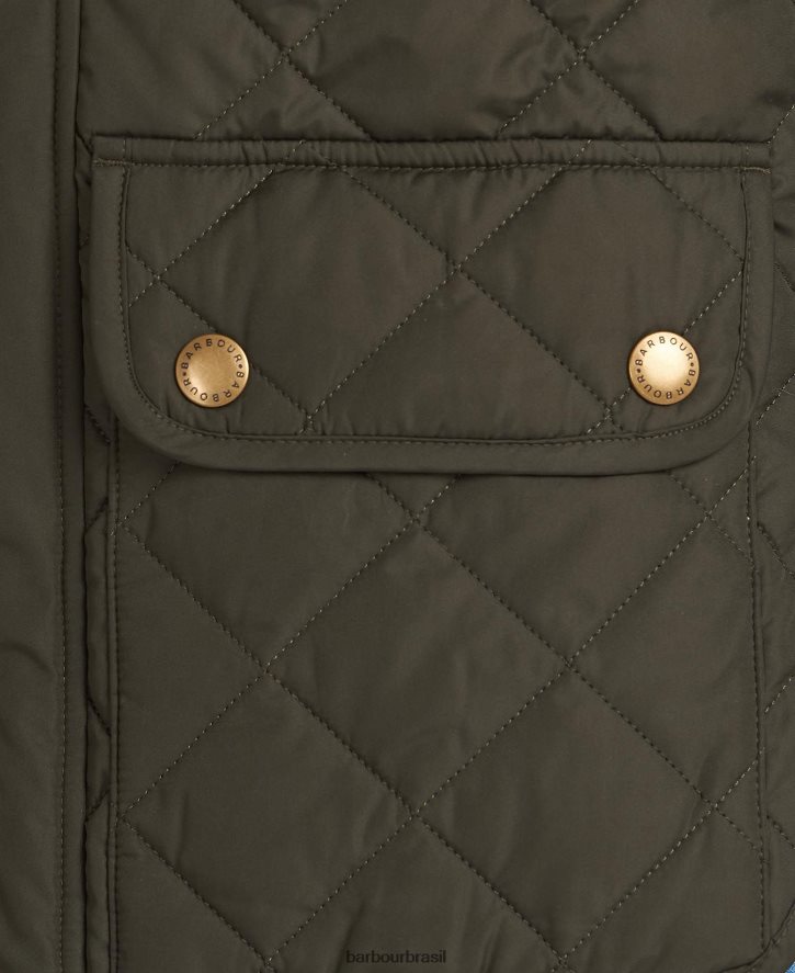 Construído em nosso tecido acolchoado de diamante exclusivo, é estilizado com uma gola alta enfeitada com cordão para uma sensação macia e calor extra. cortado em um ajuste definido, é detalhado com dois bolsos de aplicação com fecho de botão e um zíper frontal bidirecional para uso versátil, enquanto um protetor de tempestade com tachas ajuda a proteger da chuva e do vento.
