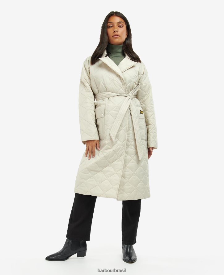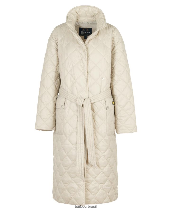 servindo como uma elegante opção de agasalho longline, a jaqueta acolchoada barbour international harewood é projetada com acolchoamento clássico de caixa de moto e possui bolsos grandes na frente para funcionalidade ideal ao ar livre. o detalhe da cintura com cinto adiciona um toque de feminilidade.