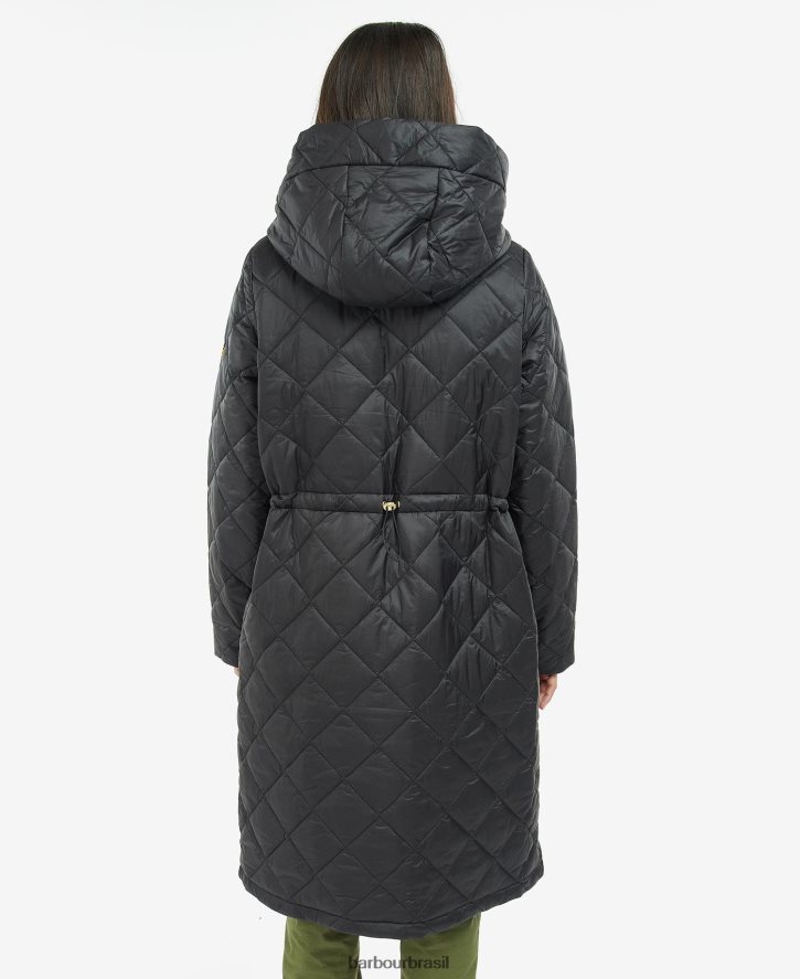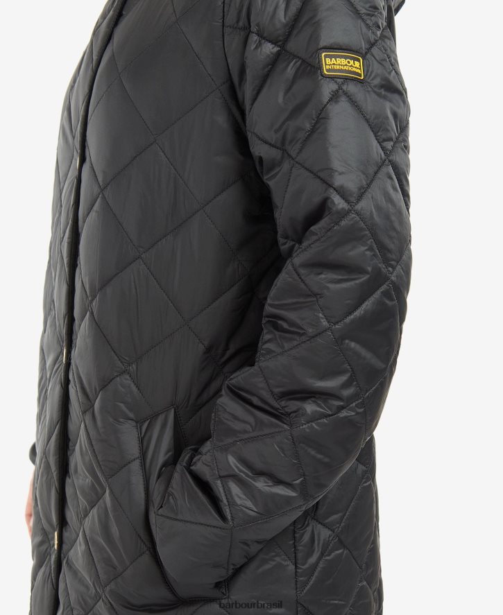 um grampo respirável para todos os climas; a jaqueta barbour international rockhampton serve como uma solução moderna para modelar os dias mais frios. saia para o seu passeio no campo com confiança neste estilo longline, finalizado com acolchoamento de caixa grande, um capuz funil quente e grandes bolsos embutidos.