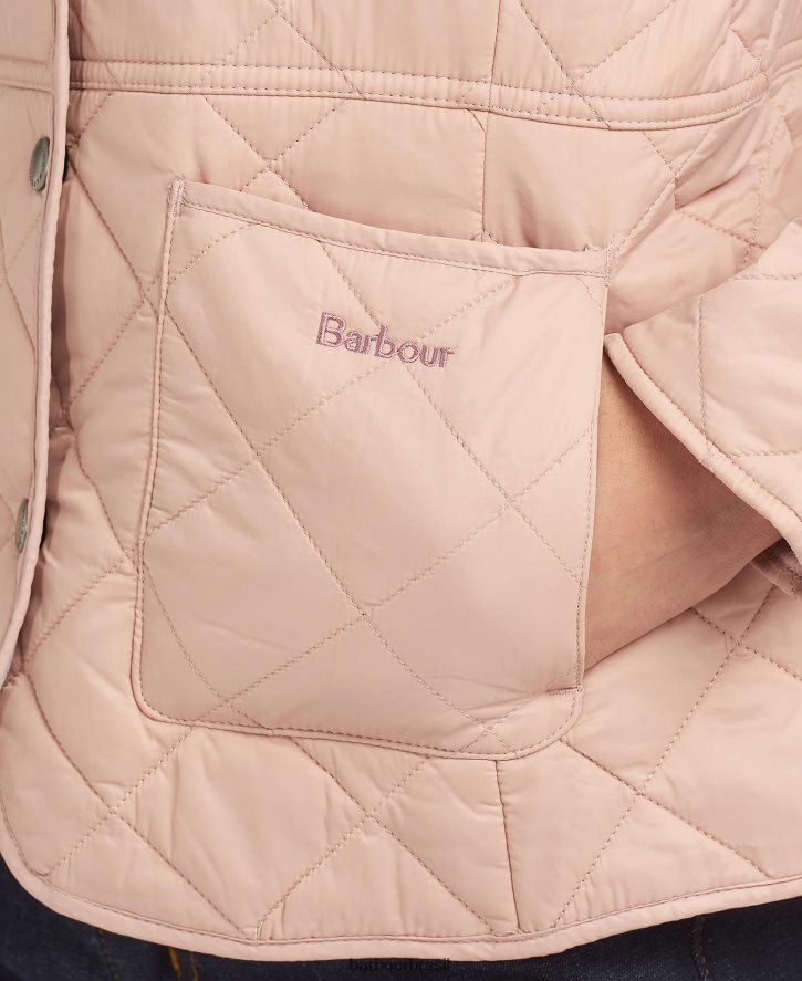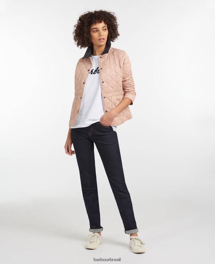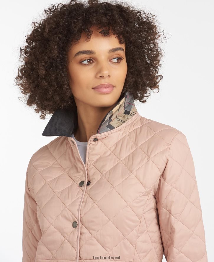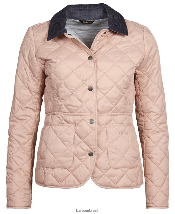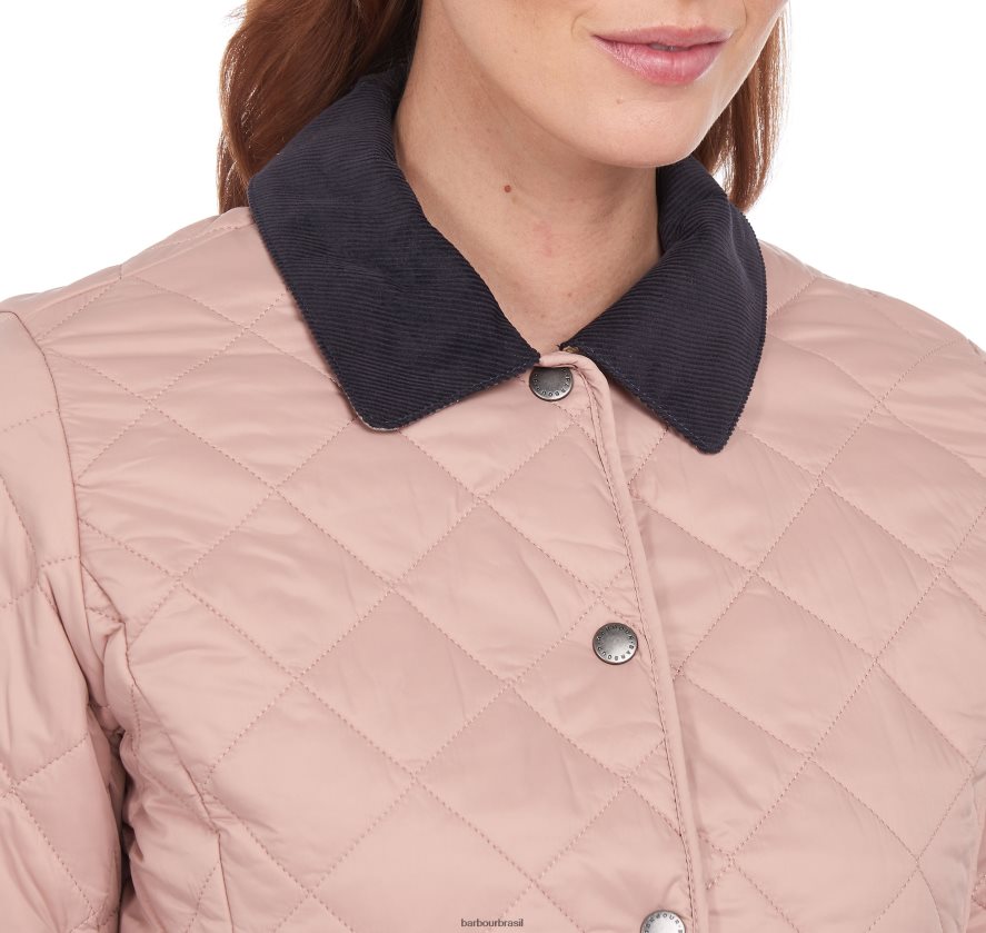 a jaqueta barbour deveron é box acolchoada com gola de veludo cotelê e forro feminino contrastante. possui dois bolsos práticos na frente e marca barbour bordada para um toque autêntico.
