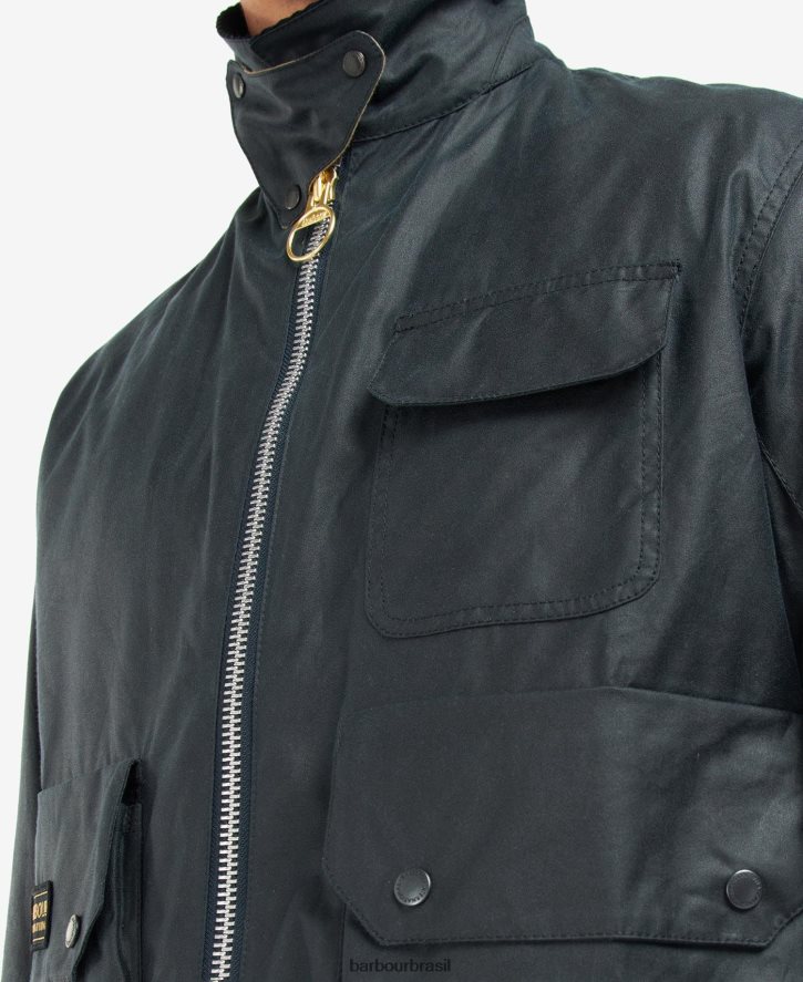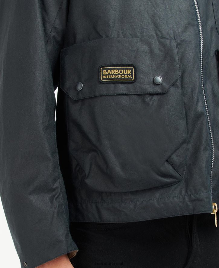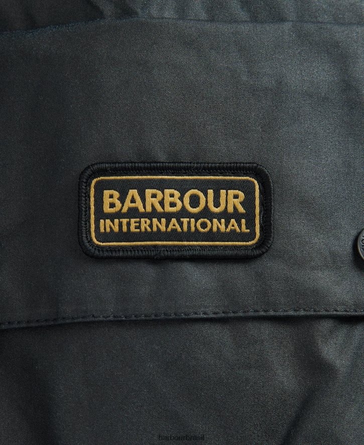 a jaqueta encerada barbour international harlow apresenta lindamente o estilo da herança inglesa. esta peça de vestuário com zíper vem com um fecho frontal, três bolsos, gola de veludo cotelê e marca barbour no bolso para finalizar. use-o com jeans e botas para passeios no campo.