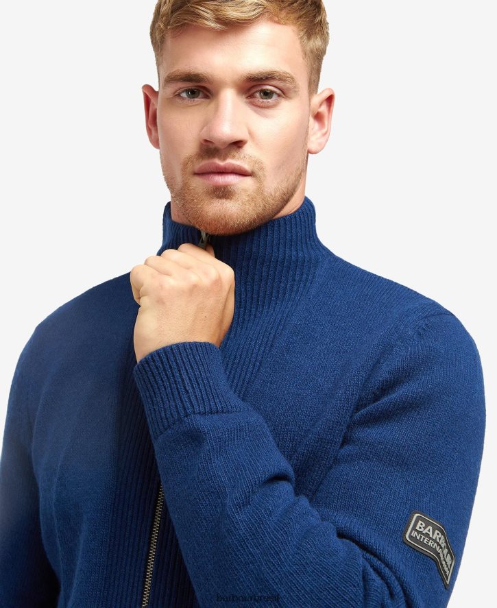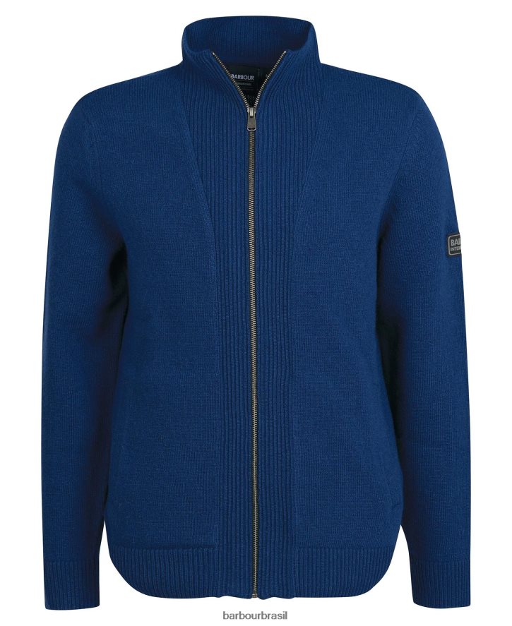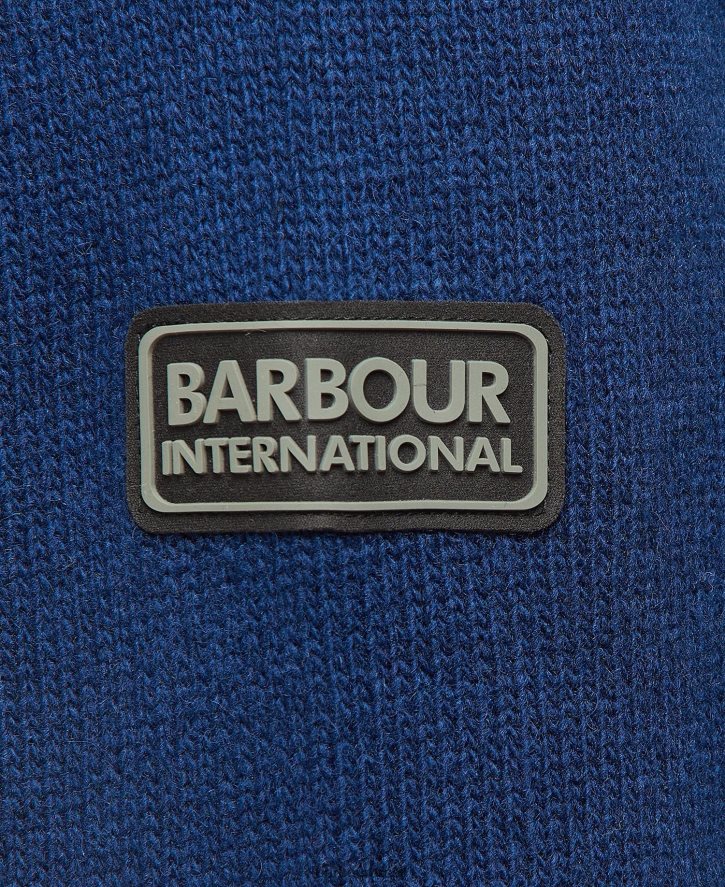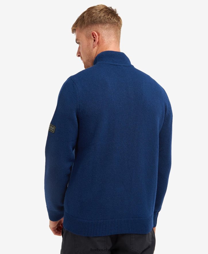 a malha de liga internacional barbour possui uma gola de areia com um design de meio zíper na frente. Apresentando bolsos inferiores, esta peça é a peça básica perfeita para usar no dia a dia. um logotipo internacional da barbour na manga esquerda finaliza a peça sem esforço.