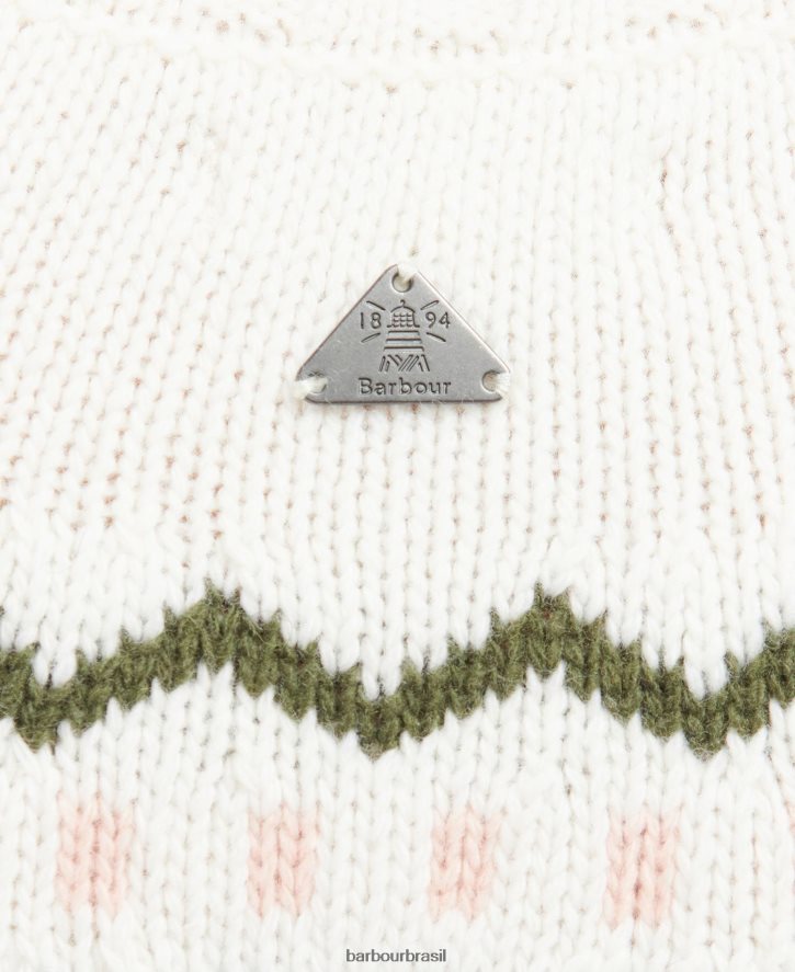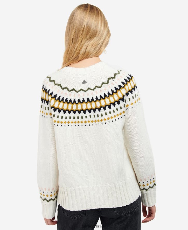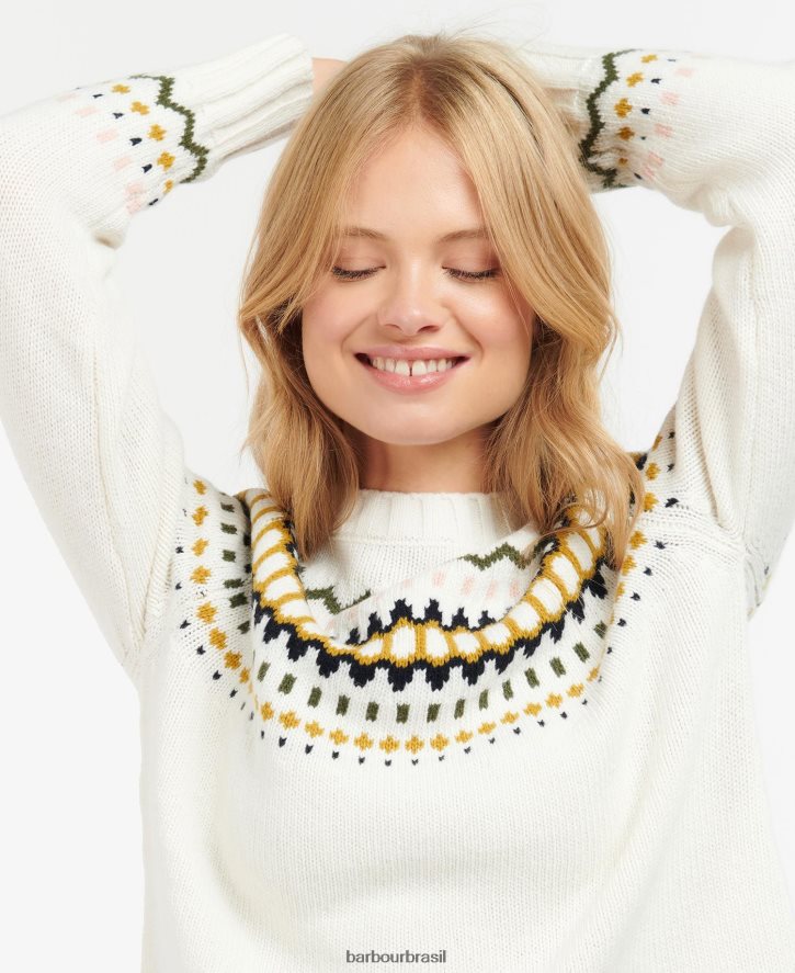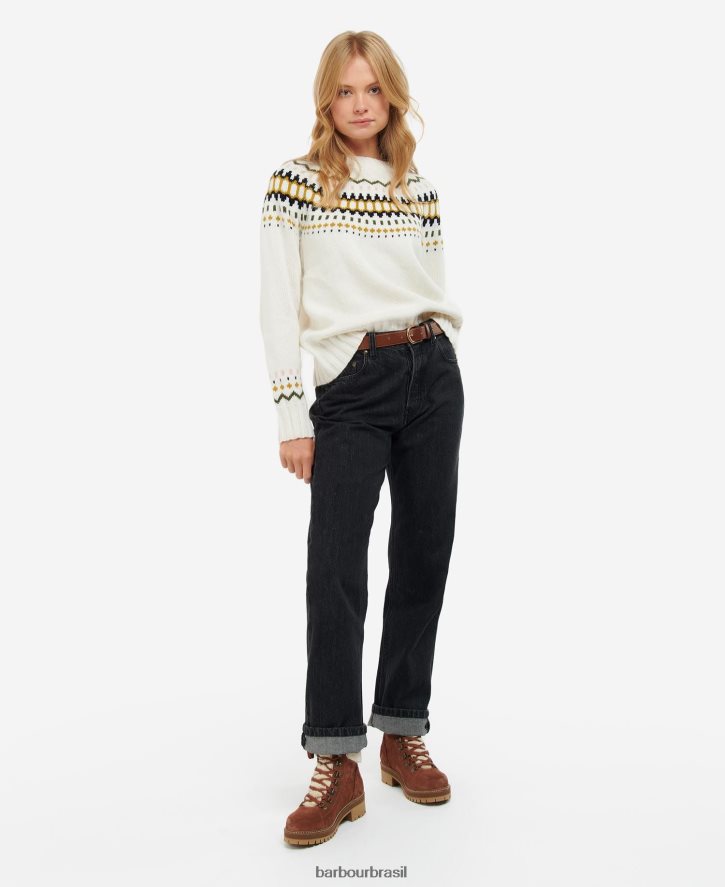a malha barbour lana apresenta um design feminino fair isle ao redor da pala e punhos para atenção premium aos detalhes.